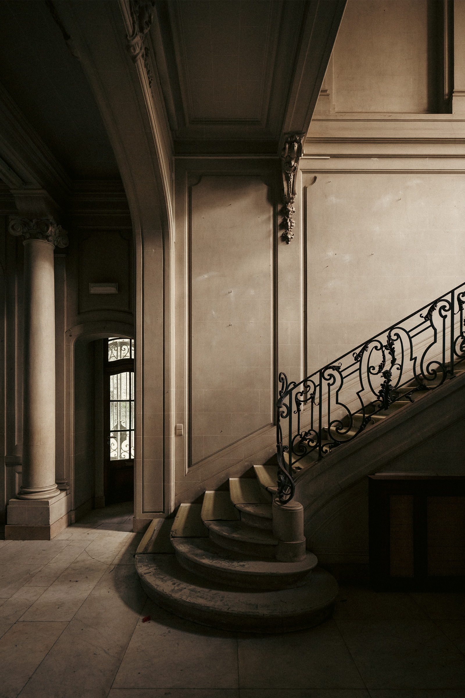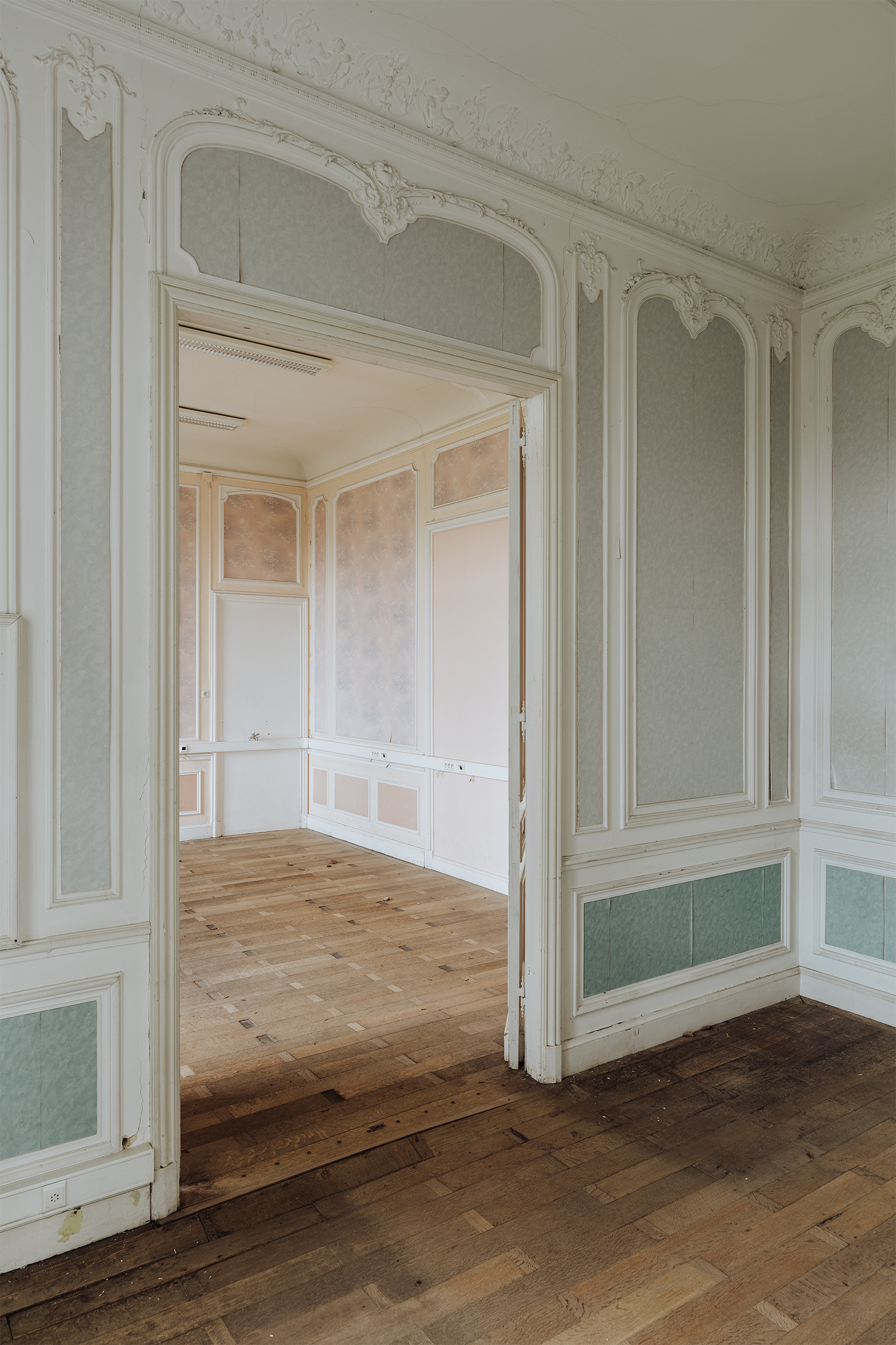 Pre-renovation documentation of the historical Château Bettonville, a neoclassical masterpiece located on the outskirts of Verviers, in Belgium. Its monumental presence is a testimony to the grand era of industrial wealth of this area. The castle was commissioned by entrepreneur Clément Bettonville in 1905, to serve as a private family home. The architect: Charles Thirion, famous for many eclectic buildings in this region like the Grand Theatre of Verviers and the city’s main Central Station.