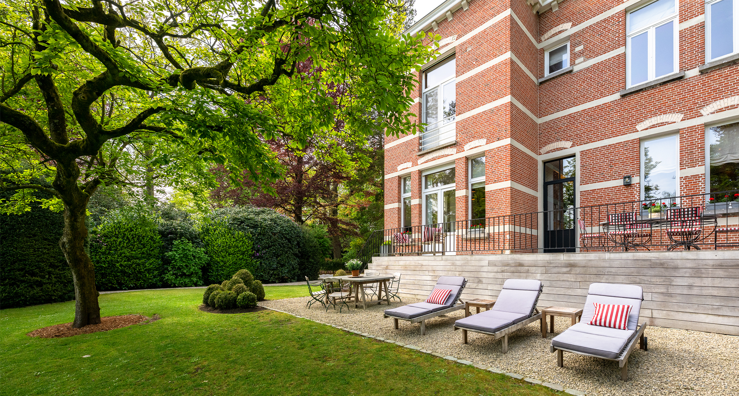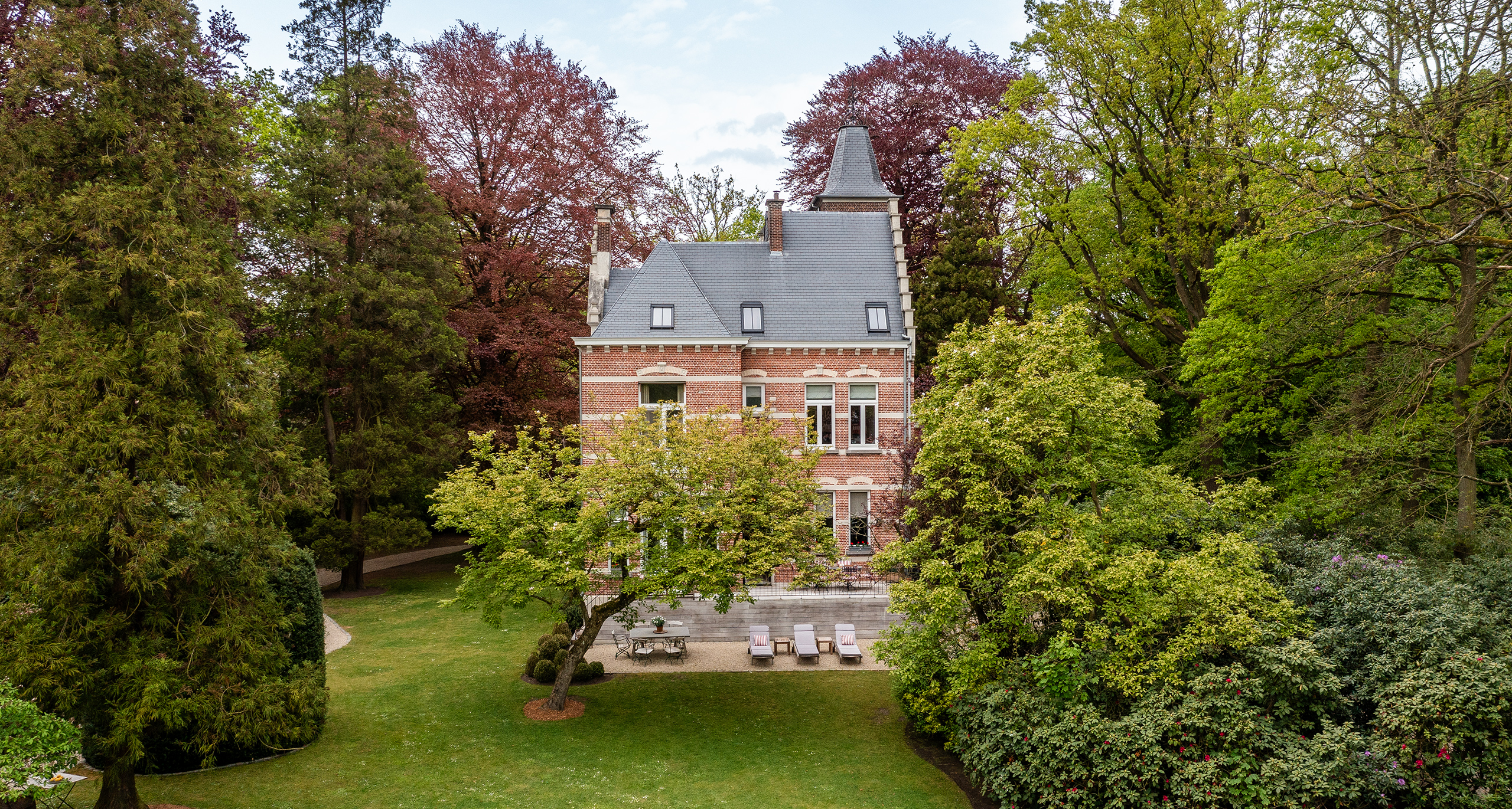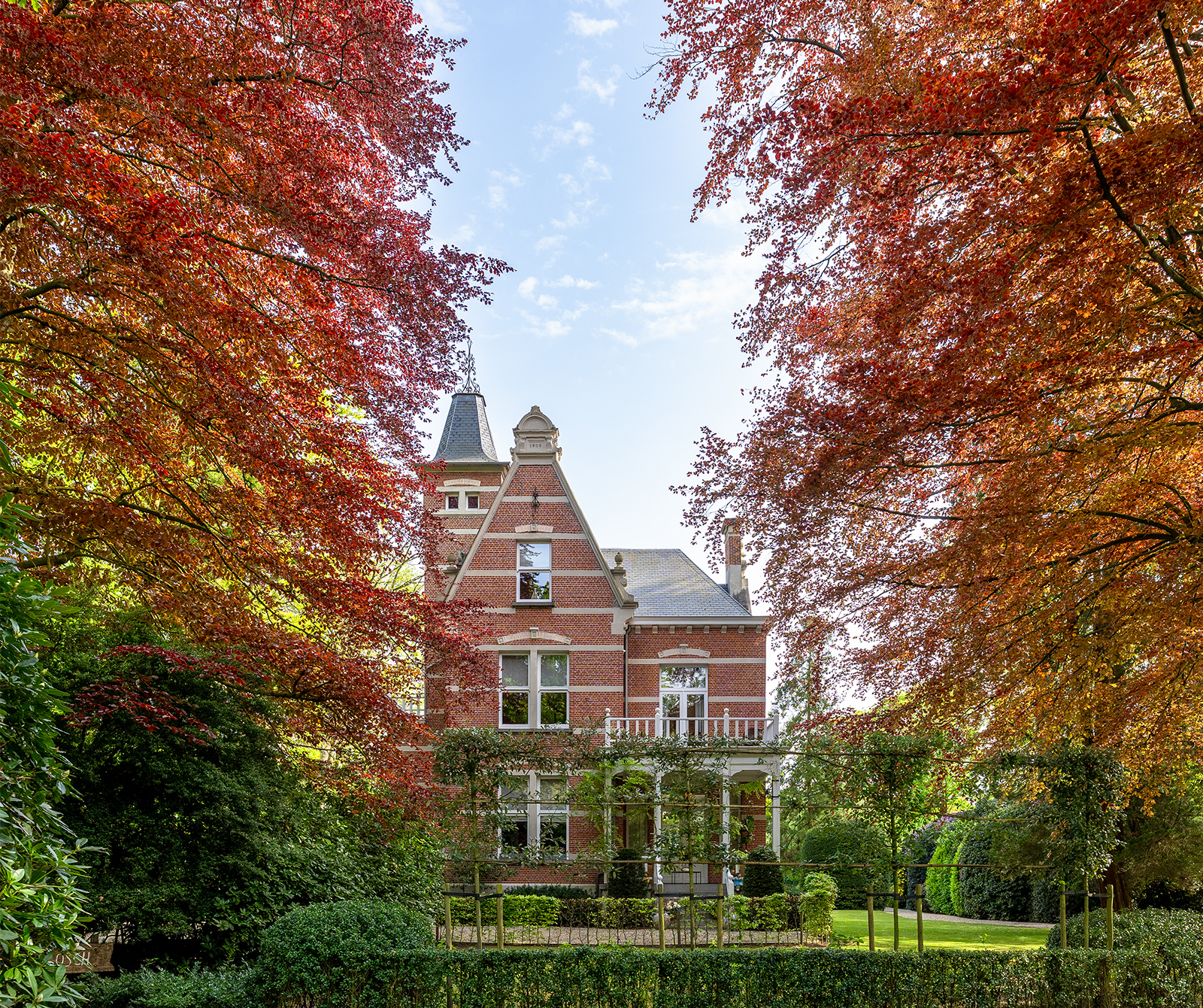 Prime real estate—the historical Villa Ten Bosch, an exceptionally beautiful property in Schoten. Built in 1905 this stunning mansion is located in the exquisite Schotenhof, a historical area northeast of Antwerp. This enormous region, once vast castle parks, forests & gardens, was developed around the 1900s. Luxurious villas and homes were built to accommodate Antwerp’s upper class society. Today almost all the Schotenhof homes are protected heritage.